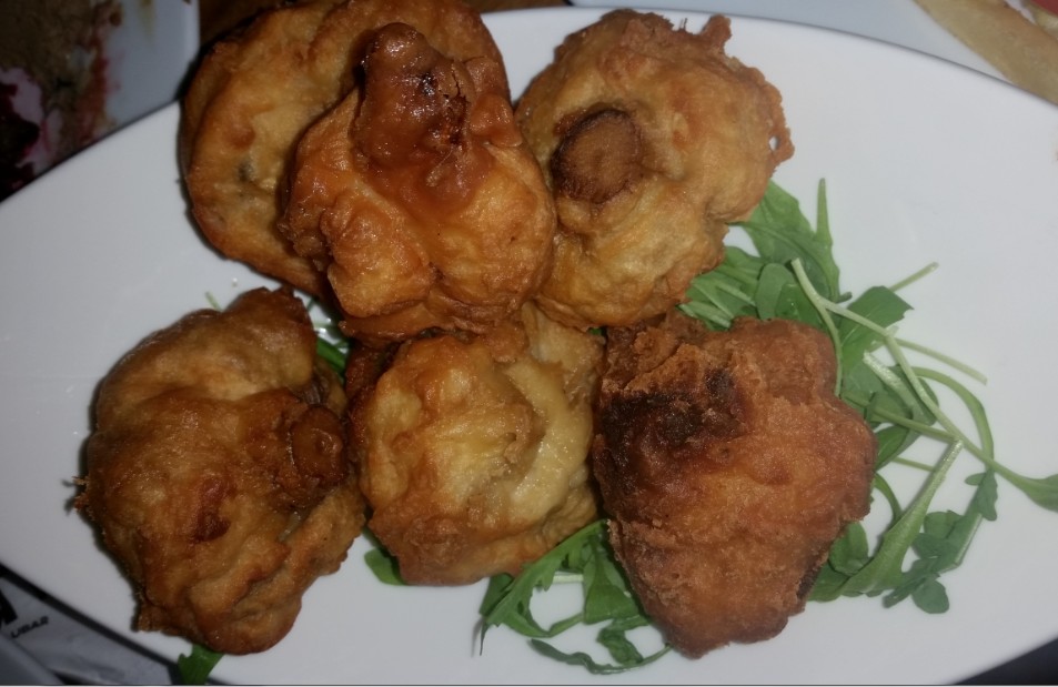 פטריות וכרובית בוויינשטפן פטריות שמפיניון וכרובית מטוגנות בבלילת בצק בירה פריך, מוגש בליווי ספייסי מיונז וטריאקי-צ׳ילי.