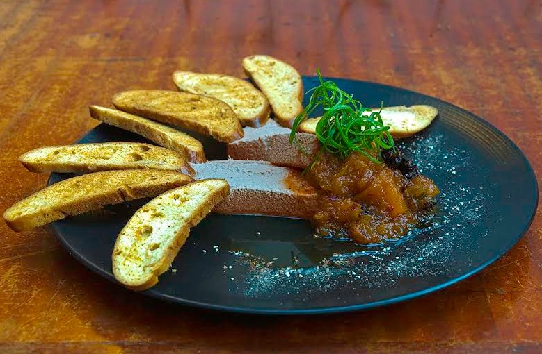 פטה כבד עוף – מוגש לצד צנימים וקונפיטורת דלעת ביתית.
