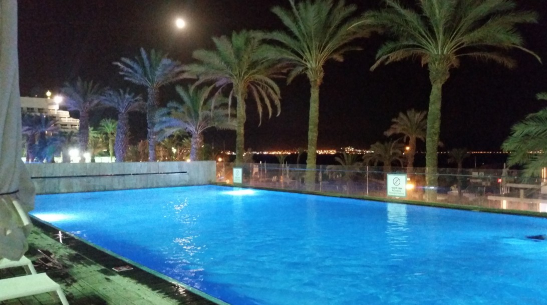 הבריכה בשעות הערב (בימים מסוימים ניתן ליהנות משחיה לילית):