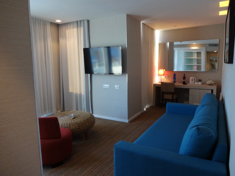 אז הגענו למלון ביום חמישי לקראת ערב. קיבלנו סוויטה גדולה ומפנקת המשקיפה לבריכה ולים.