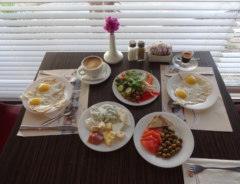 בבוקר התפנקנו עם ארוחת בוקר עשירה בירקות וגבינות.