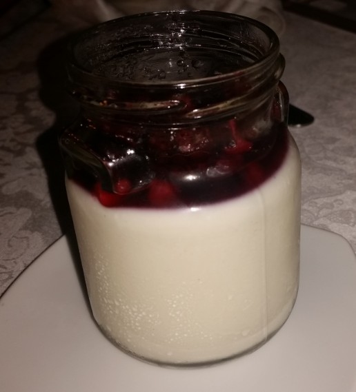 טארט לימון עם מרנג איטלקי ורוטב מנגו פסיפלורה ; באבא או רום – קרם מסקרפונה ופירות קיץ, על סברינה ; זביון של הדרים עם גלידה פיסטוק וענבים ; פנה קוטה עם רוטב פירות יער. כפית מזה, כפית מזה, כפית מזה וכפית מזה. ואז שוב: כפית מזה, כפית מזה, כפית מזה וכפית מזה, וחוזר חלילה…עד שלא נשאר כלום בצלחות/ כוסות לא נרגענו. אם בכל זאת צריך לבחור…הייתי הולכת על הזביון והפנה קוטה.