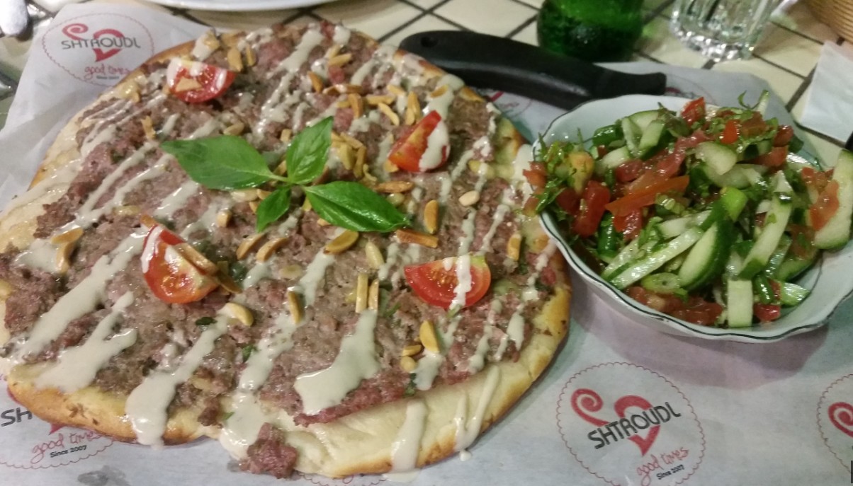 ערוסה – פיתה סאג' שנאפית במקום, עם בשר עגל טחון וצנוברים. עוד מנה טעימה מאוד, קריספית ואותנתית.
