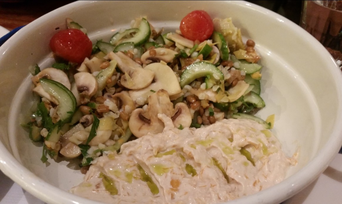 בגזרת הראשונות: אספרגוס בגריל עם פולנטה נהדרת ועלי בריק ממולאים במוצרלה ופסטו, ארנצ'יני – "עוגת" ריזוטו פטריות אפויה וארנצ'יני פסטו ועגבניות מיובשות, קציצות כרישה עסיסיות – עם בשר עגל וקשקבל בליווי סלט מלפפונים ושקדים, מנה מעולה נוספת היא קובנייה דג – קוביות בס בלימון, בצל אדום, צ'ילי ובורגול על סלסת מנגו – שילוב מושלם של טעמים. ההפתעה של הראשונות היתה ללא ספק: סלט כוסמין ובורגול עם מלפפונים, ארטישוק, עלי רוקט, לימון כבוש וטחינה דלעת, שעל פניו נשמע משעמם, אך היה מדהים בטעמיו ולא נשאר ממנו פירור.