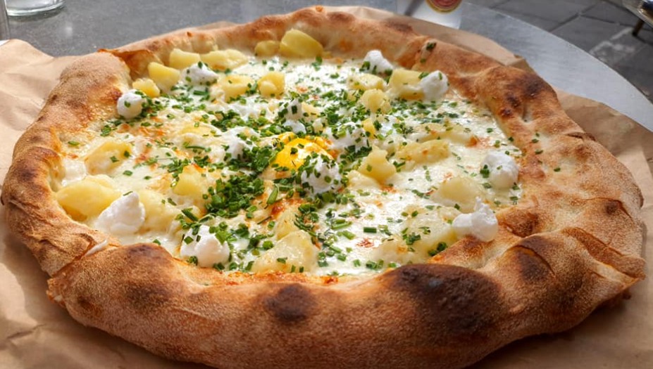 בגזרת הפיצות הלכנו על פיצה תפוח אדמה מדורה – שלוש גבינות, ריקוטה, פרמז'ן, עירית, לימון וביצת חופש.