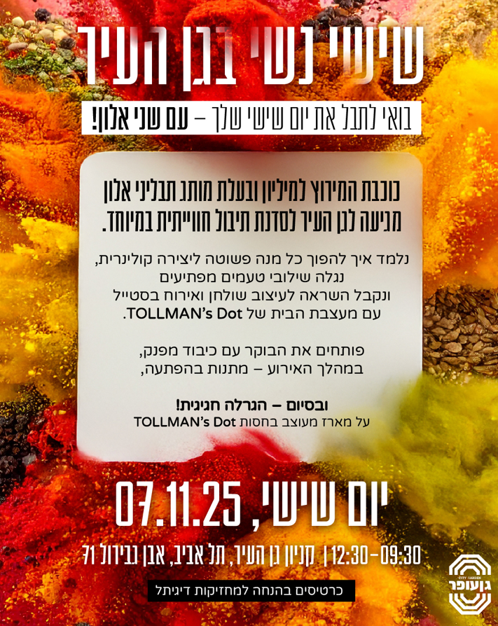 בעיצומה של עונת מאסטר שף שכבשה את המסך ומעוררת השראה בכל בית – גן העיר תל אביב מזמין אתכן לבוקר חווייתי שמוקדש כולו לעולם הקולינריה, התיבול והטעם.