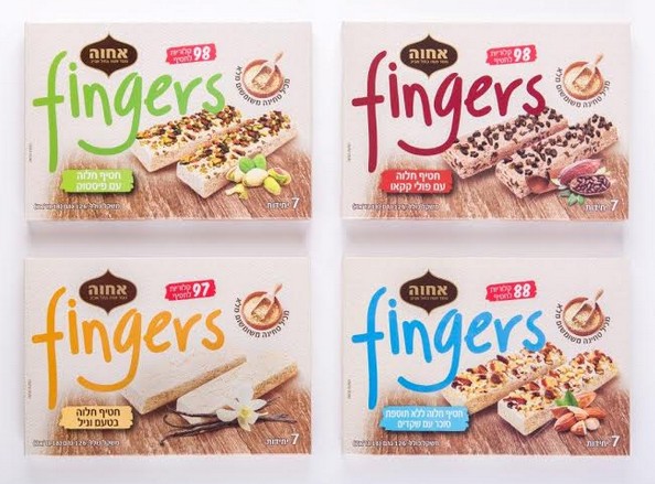 חדש מאחוה: חטיפי חלוה fingers בטעמים וניל, עם פיסטוק, עם פולי קקאו וללא סוכר עם שקדים