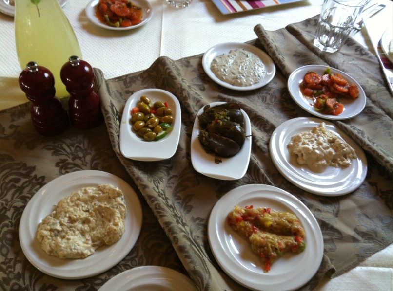 אכלנו ארוחה רבת מטעמים: החל מסלטים אתניים וכלה בסינייה, חציל בקדאיף, הודו ממולא, קבב כבש ועוד.